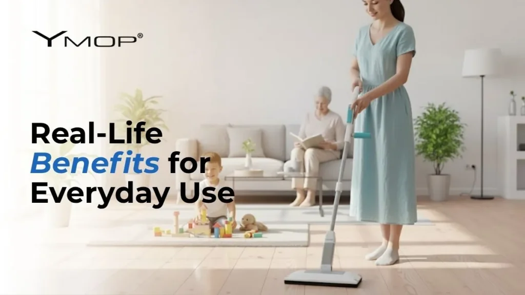 For elderly users, it eliminates the need for bent water buckets or walking with them. The ease of cleaning is enhanced by its ergonomic handle and automatic movement. It is easier to use, even for people with joint pains.